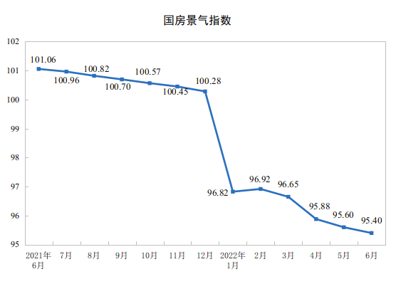 6月份,房地产开发景气指数(简称“国房景气指数”)为95.40。