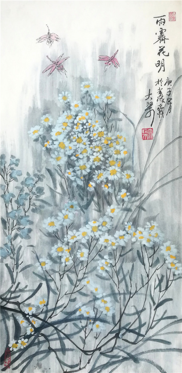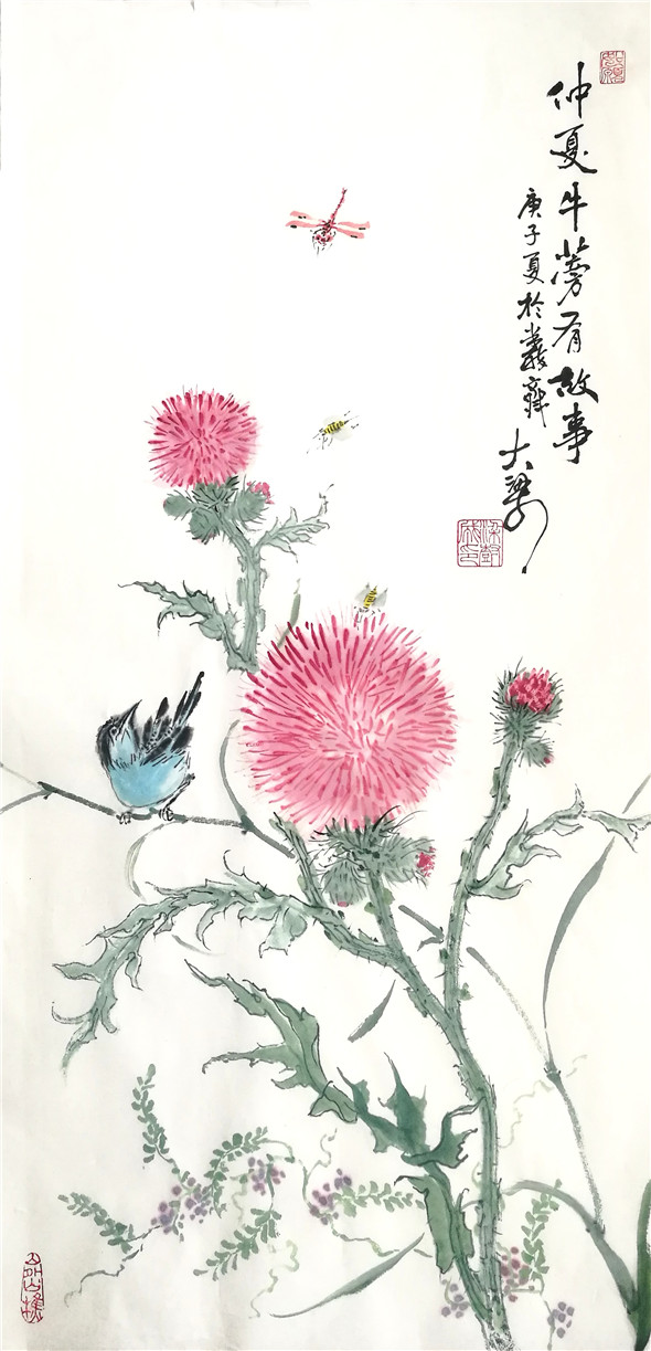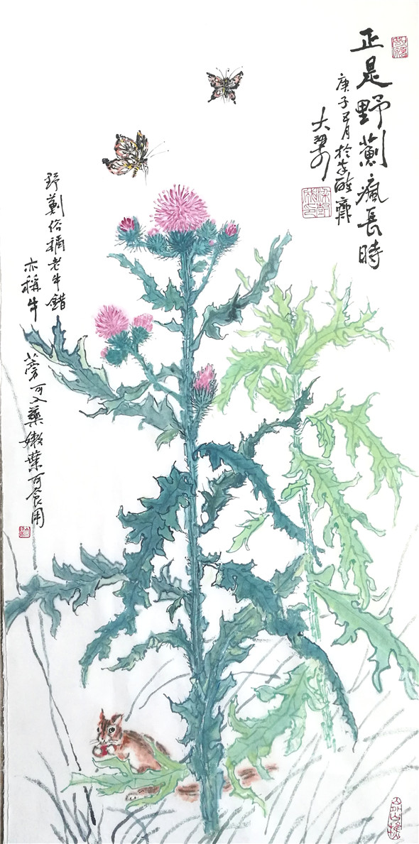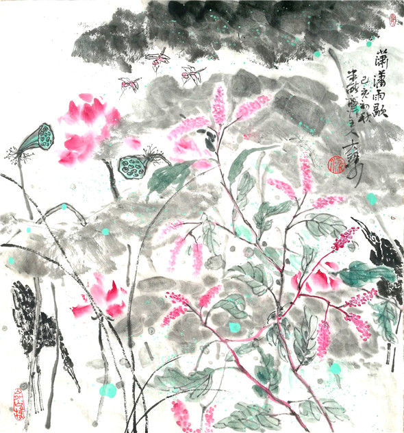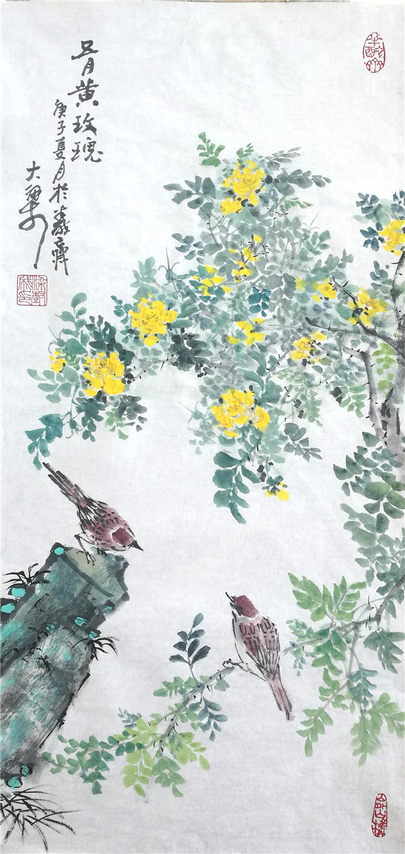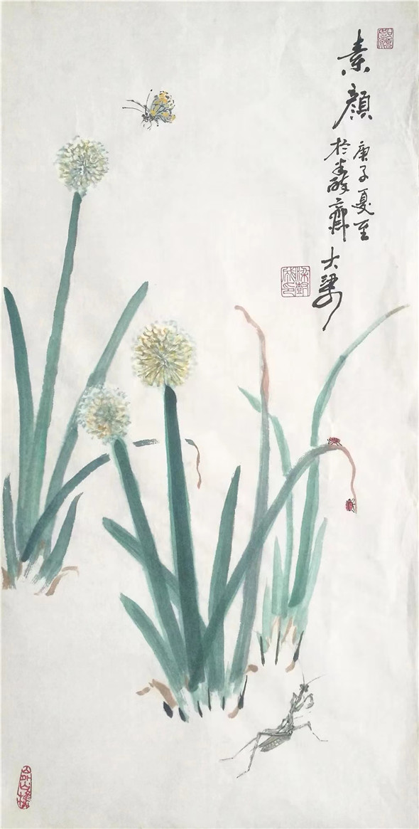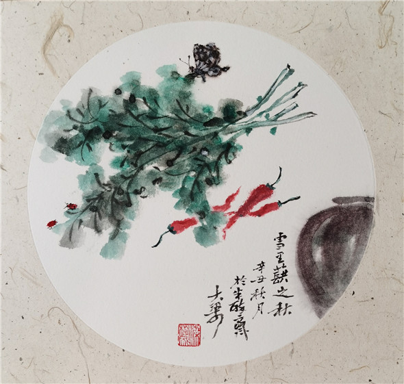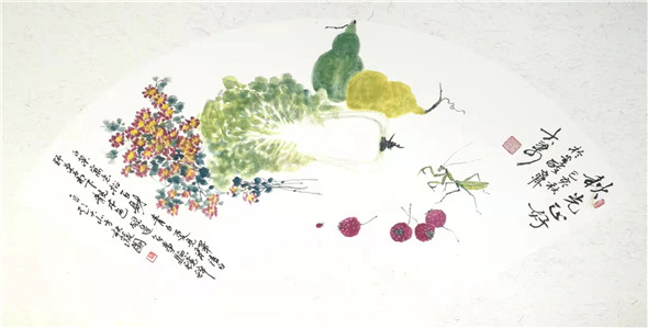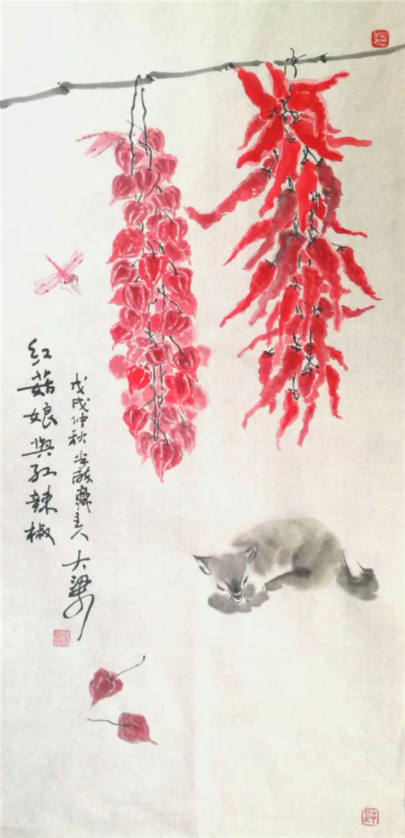 综上观之,可见大梁先生在题材上注重地方的一草一木,贴进百姓的日常生活,多是他们的身边事物,並且大梁本人对其也非常熟悉,热爱,加之细心观察,提练,注入人性化。从技法上看,他传统功力深厚,书法用笔活泼多变,线条质量高,为造型打下坚实基础,线条精到,下笔果断。对水墨理解深刻,运用灵活适度,为作品的生命力提供支撑。他的画多样性,重复干画一面的极少,又颇具个性,加之题款题诗与简练结构,使其作品有强烈的文人气息扑面而来。