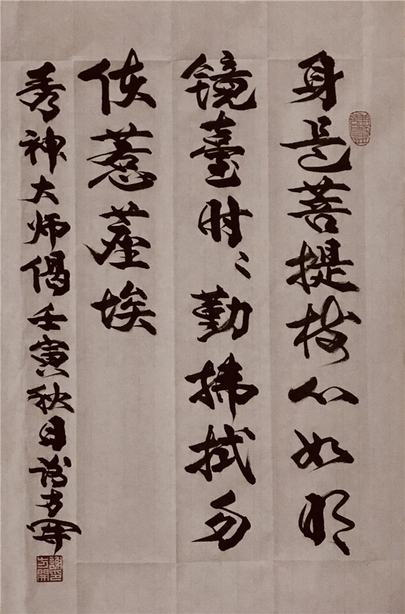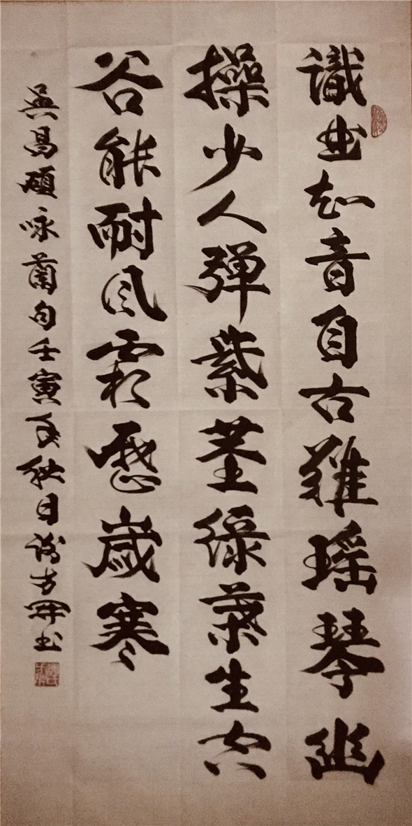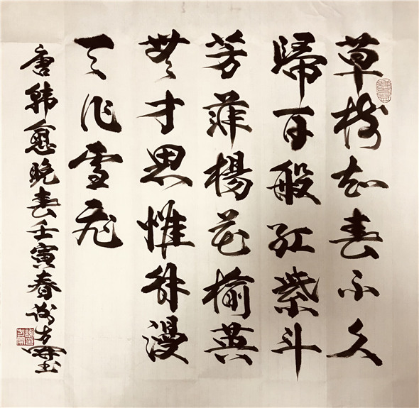 数十年来,钟情于书法艺术,临池不辍,辛勤耕耘,追古求真,博采众长,临历代诸名家墨迹,取众家之长,掦长避短,其书法作品,笔法以唐楷为基调,行楷相间,草行交互,楷带行笔,行含草画。字体端庄大气、浑厚有力,神韵贯通、笔格遒劲,古意盎然。其书法艺术作品,深受广大社会人士及收藏界的喜爱和收藏。