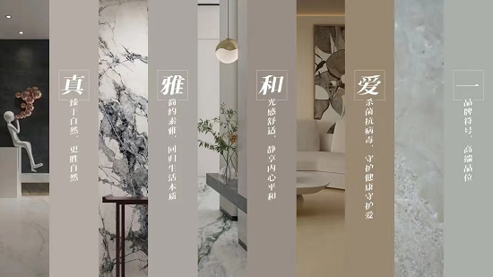 而回到产品整体的色调、纹理本身,本次新品素雅系列和奢石系列分别主打“素雅”、“自然”两大方向。另外,本次系列新品均一应加入了“石材光”、“柔光”、“雅光”三种光度作为选择,柔和的光度也能更好满足当下舒适生活的空间需求。