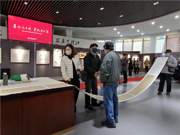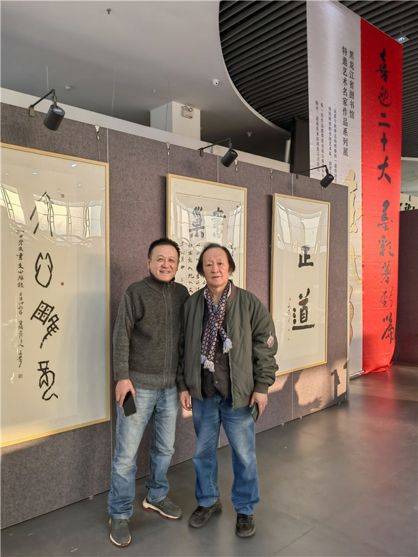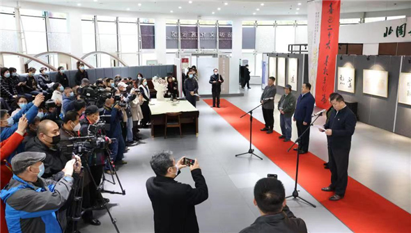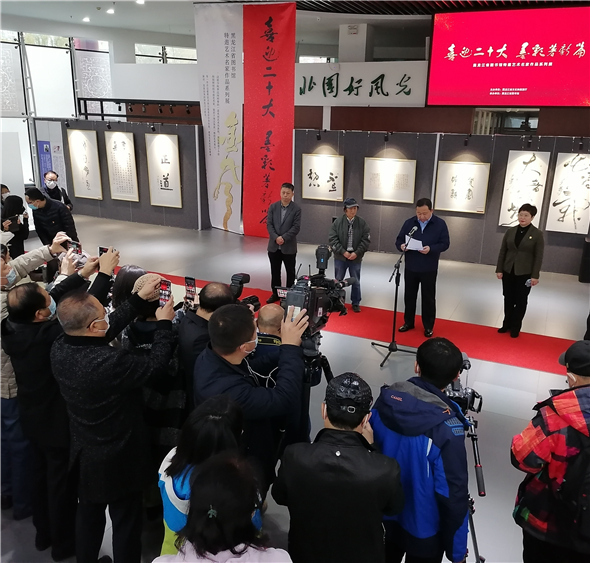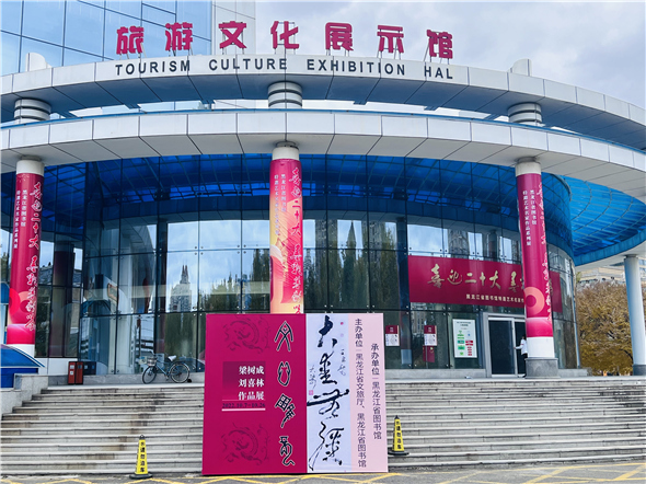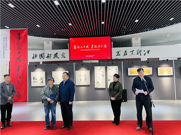 【中网资讯书画讯】黑龙江省文旅厅与省图书馆主办的《喜迎二十大 墨彩箸新篇》系列名家艺术邀请展首场展十月十七日下午在省图书馆旅游文化展示馆开幕。黑龙江省委宣传部副部长文旅厅厅长陈哲致词并为大梁颁发省图书馆收藏证书。