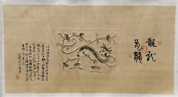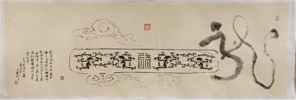 大梁与刘喜林的合作作品是刘喜林的木雕花传拓,大梁为其题识,可谓珠联璧合。(文/任柯)