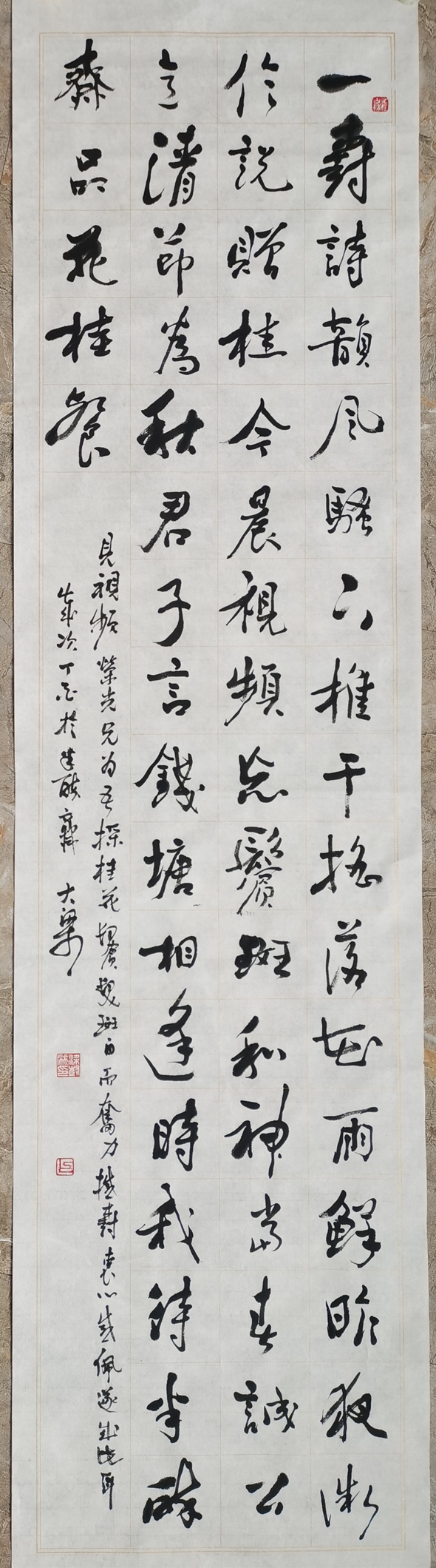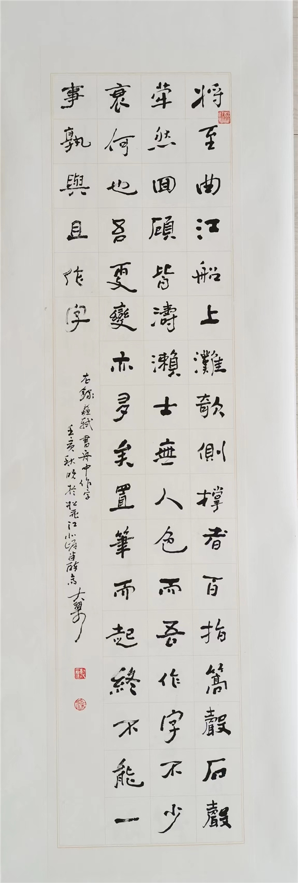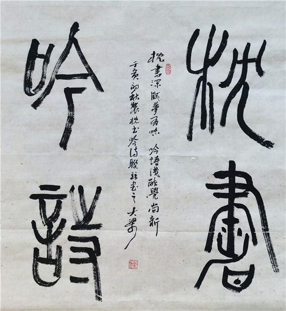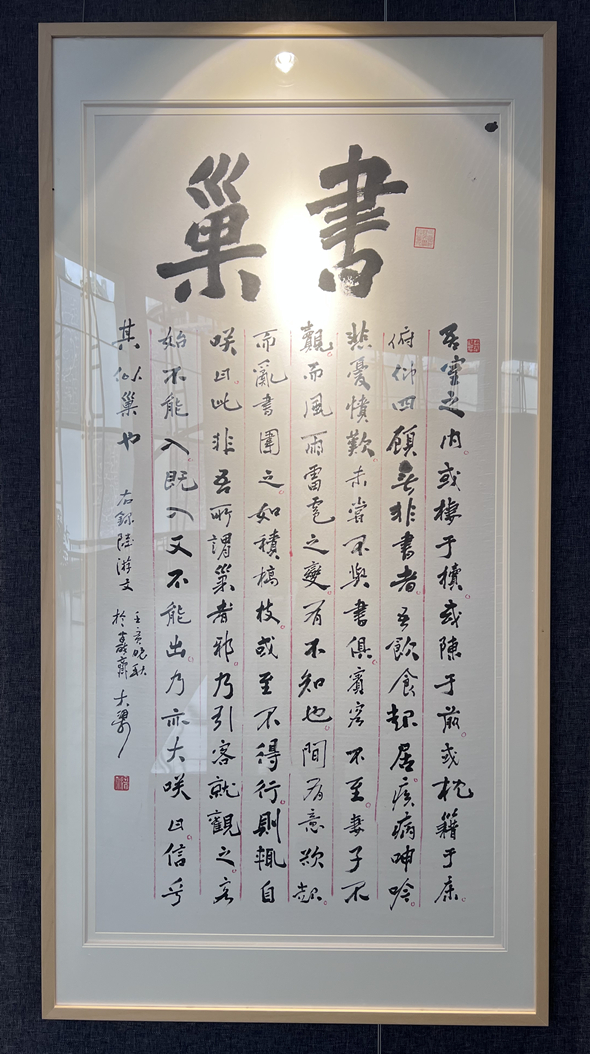 欣赏展出的大梁书法作品,能感知他国学修养之积淀深厚,作品内容多为自己的诗文,即使内容取之古诗文,他也多有自己的见解题于序跋。他力行中国文人的诗书画印于一体。