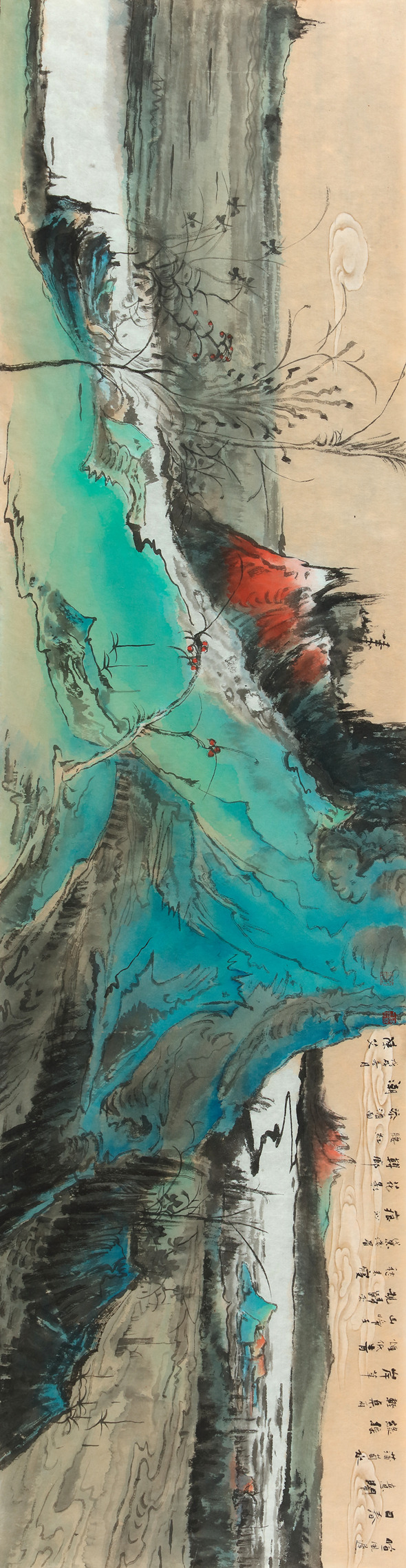 其一系列新青绿作品都以不同的风貌、统一的格调塑造了山水的美感。古今凡有大成就之艺术家均是无心作画、率性而作,妙在天机暗合“道”。陈艾女士的作品有生机、有气象,有墨韵笔力,形成文化修养、技法、人生阅历的高度统一,合乎道的思辨规律。