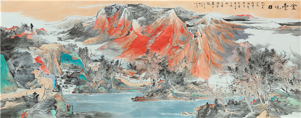 画家陈艾女士的作品《金台晓日》是一幅震惊人心的佳作。陈艾女士作为北京艾尚画院院长、清华大学美术学院高研班主讲教授,积累了大量的教学经验,从“教学相长”的原理上也吸收了来自全国各地不同民族不同文化学员的艺术信息,她不轻易地否定而是用更加辩证的视角去吸收,所以陈艾女士的绘画语言是有丰富生活经历的生活语言,有生命脉搏的语言传达。