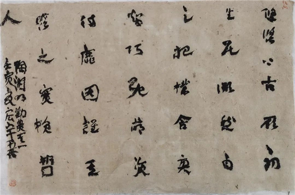 陶渊明 饮酒其八扇面 局部