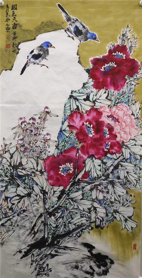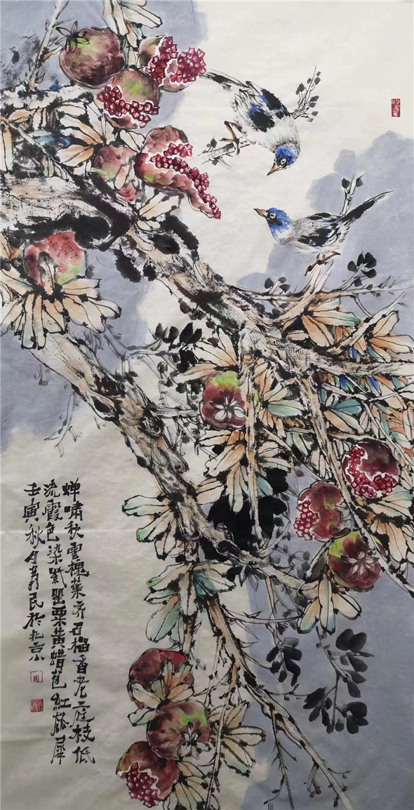 夫言绘画者,先竞求容势,后辅以情感,方能动人。画者余为民,有多次参与省、市及全国美术展览之经历,其以一管之笔,擅拟太虚之体。其笔下之花鸟多以小写意示人,其绘画呈现出三大特点: