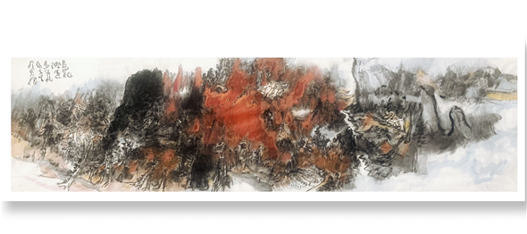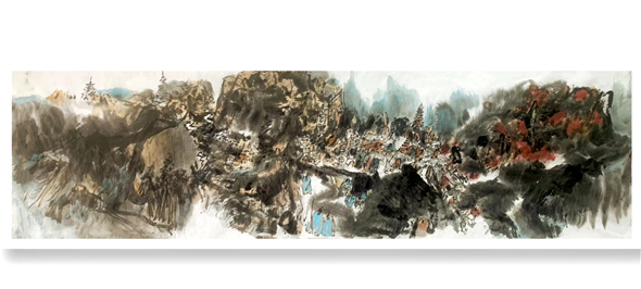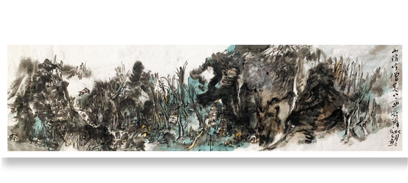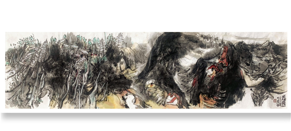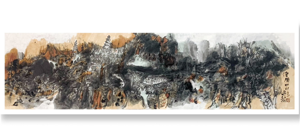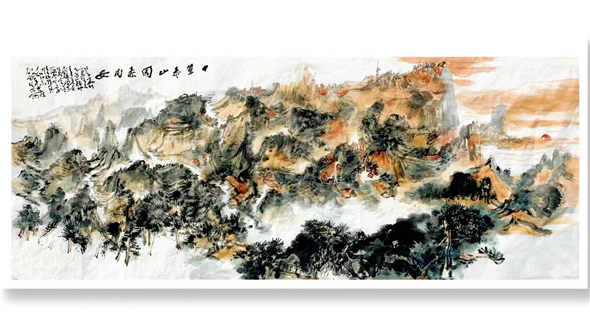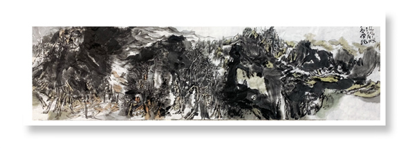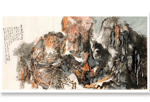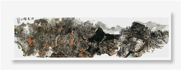 古画论讲“寄兴于笔墨、假道于山川、不化而应化,载之寡宇,山川之质地”。仇东的国画作品透出的就是这样一种大气和才情。他认为国画必求其博大精深,融会贯通,追求个性,不是追求怪异风格,而是表达画家主体与自然客体情感交融。他的这些绘画理念始终贯穿在其绘画创作过程中,使得画作不是对景写实,而是源于自然,高于自然,从自己的审美意识出发,把从生活、自然中汲取的素材加以提炼,形成情景交融的升华。仇东的作品展现了近山清奇、远山苍莽、群山如簇、树木峥嵘、野域清幽、溪流喧吟的山水真韵,尽显静寂、沉凝、虚灵、浑厚之美。他非常懂得山水画的意象性、心象性乃至梦境中的山水境界。他十分注重传统笔墨的运用。用笔,讲究书写性、灵动性、表情性、天趣性,笔笔力透纸背,笔随心至,产生美感;用墨,注重画面黑、白、灰的变化、协调性和纯粹性,强调用笔的力度和墨色的艺术效果。所以他的画面潇洒松动,空灵而不失节律,随意而不失法度,意写而不失形象,深厚而不失明快。仇东从不因循守旧,而是善于将油画的色彩技法和书法线条恰到好处地糅合在水墨山水画中,形成笔墨层次丰富、画面浑厚的效果。他非常讲究位置的经营,将虚与实、清与浊、冷与暖等矛盾协调运用。画面大势的处理,绘画语言和画面风格的统一,都经过严格的推敲、反复揣摩,所以他的山水画构图多变、虚实相间、层次分明、绝少雷同,由此也形成了其作品拙而不精、雅而不俗、古朴而现实的艺术风格。