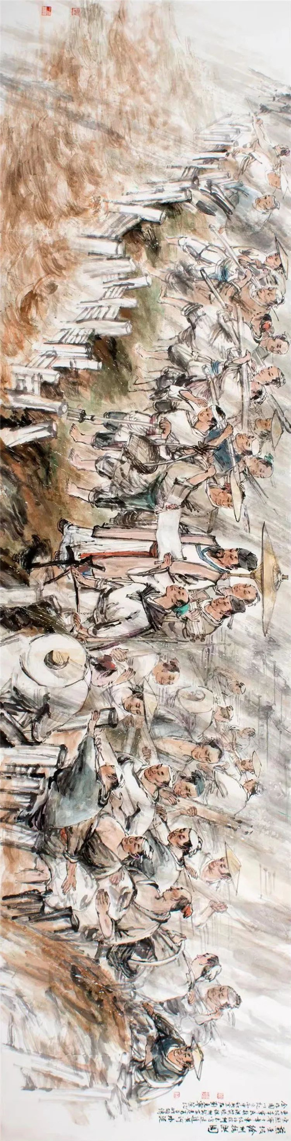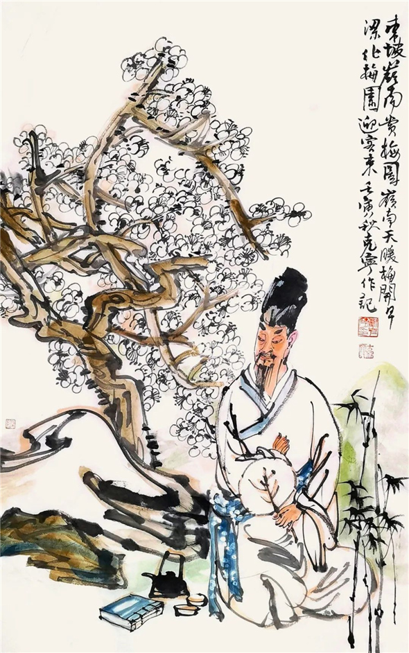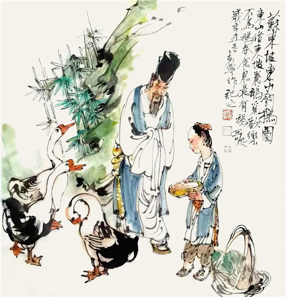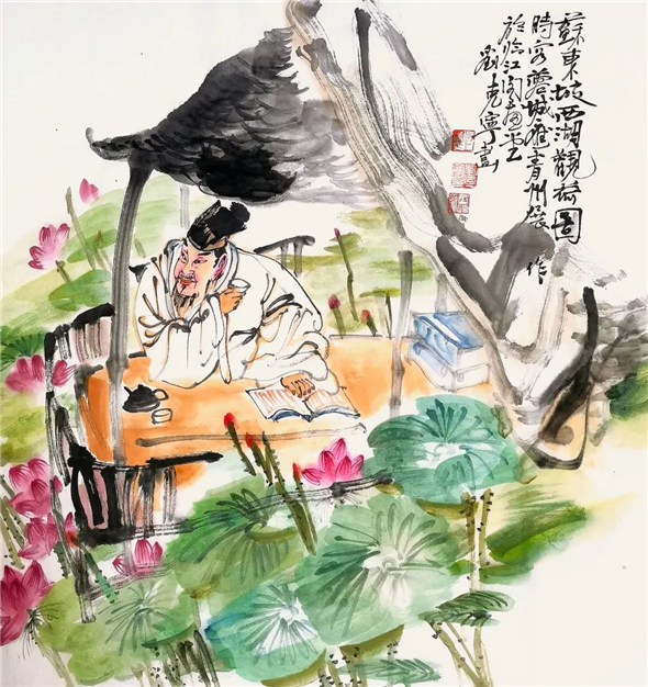 和苏东坡文化结缘对刘克宁来说也是很久远的事了,儿时的刘克宁和父母生活在成都,从父母的口中己听到过司马光,苏学士之类的名子和故事,小时跟父亲学书法,父亲一手漂亮敦厚的苏体书法让刘克宁入迷,至今刘克宁仍感觉到未及父親书法之功力。日后随着成长和工作的变迁刘克宁几乎沿着东坡足迹走过来。从川蜀到苏徐,从齐鲁到嶺南,刘克宁可谓是生活跨度极大的一位画家了,一路走来,饱饮西漠风沙,又嚐嶺南春雨,总党得有一种魂牵梦绕的身影伴随着引领着…,那就是宋代先贤苏东坡。刘克宁被这位先贤达人所折服:他的豁达,才华,豪情,诗文,亲民,质朴所感染,隨着年岁增长,阅历之丰富,他更感到苏东坡精神之可贵,更感到苏轼亲民为民的纯真情怀在现实中更加可贵,他决心用手中画筆与这位先贤对话,用纯朴心怀去问墨先贤,用自己的认知去描述先贤,去塑告自己心中的苏东坡,去发扬光大苏东坡的豪放纯真,质朴善良,无私为民的精神。因为刘克宁知道苏轼的这种对社会的责任心,对百姓无贫贱心,对仕宦无欲求心在今天多么需要的,有着普遍的现实价值。我们研究先贤,继承传统,友扬优秀文化也是画家的文化责任。一个画家的文化格局是决定画家发展的空间的重要因素。学习和表现苏东坡文化成为刘克宁的重要的主题选择。