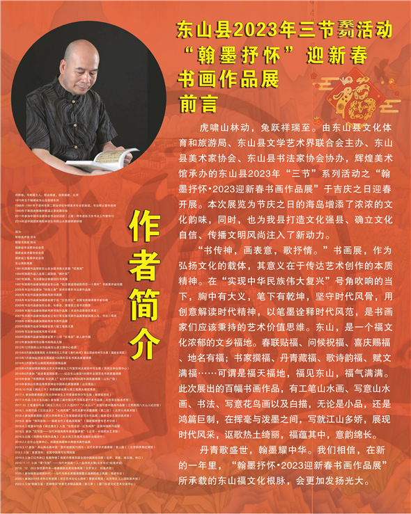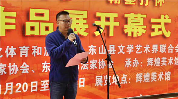 【中网资讯书画消息】2023年1月20日,由东山县文化体育和旅游局、东山县文学艺术界联合会主办,东山县美术家协会、东山县书法家协会协办,辉煌美术馆承办的东山县2023年“三节”系列活动之“翰墨抒怀"迎新春书画作品展”于吉庆之日迎春开展。东山县文化体育和旅游局局长佘桂发在开幕式做重要讲话,展览作者郑辉煌致答谢辞,东山县美术家协会副主席林济华主持开幕式。