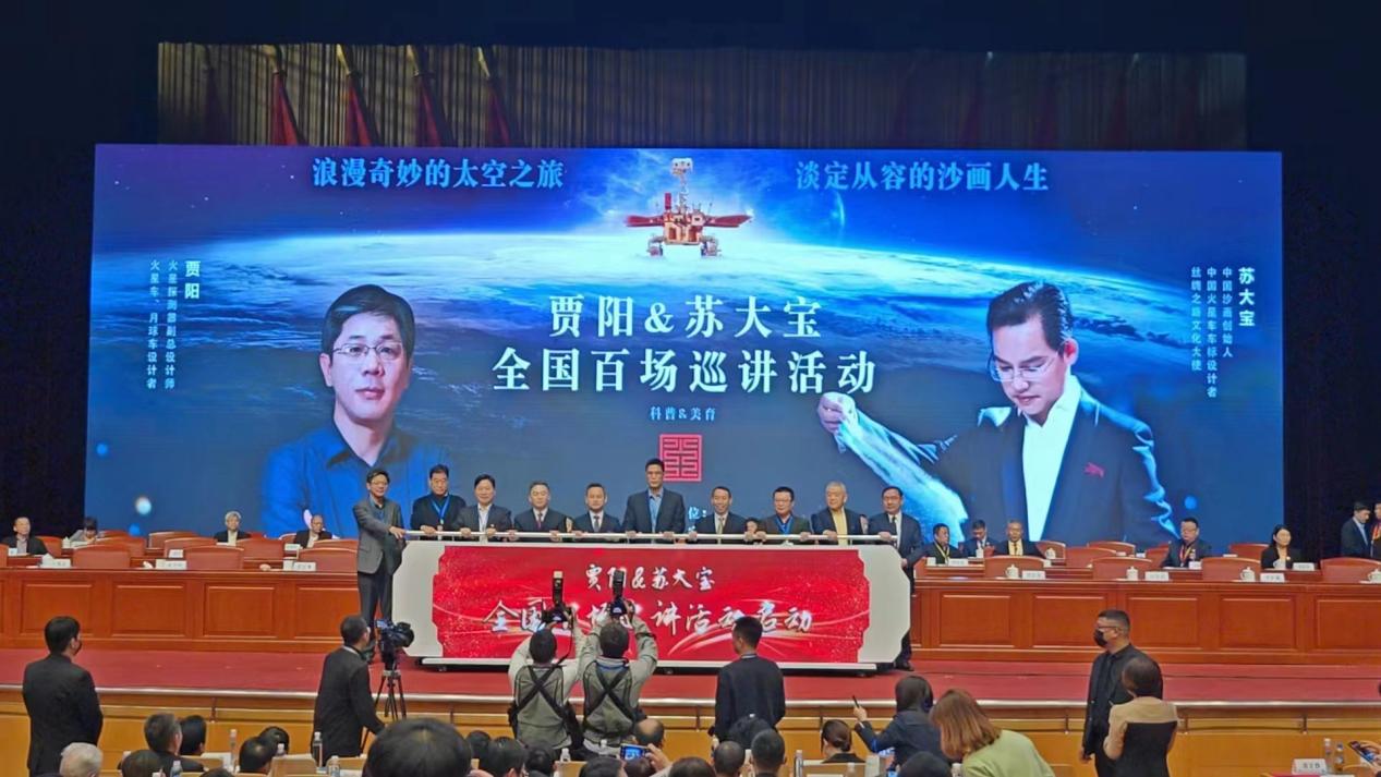 中国科学家论坛、丝绸之路城市联盟、暨南大学文化遗产创意产业研究院、天德生态科学研究院、环球旅游频道、中国工人出版社对该项目给予大力支持。中国科学家论坛主席陈贵,丝绸之路城市联盟发起人、中国公共外交协会创会秘书长宋荣华,国家开放大学教授、澳门城市大学、中共中央党校(国家行政学院)博士生导师刘惊铎,环球旅游频道CEO 吕淼,清华大学建筑规划主任安孔建,中国工人出版社副总编辑董友斌,与贾阳、苏大宝携手,共同启动火星车-生态沙画创意行动——“贾阳&苏大宝全国百场巡讲”活动。