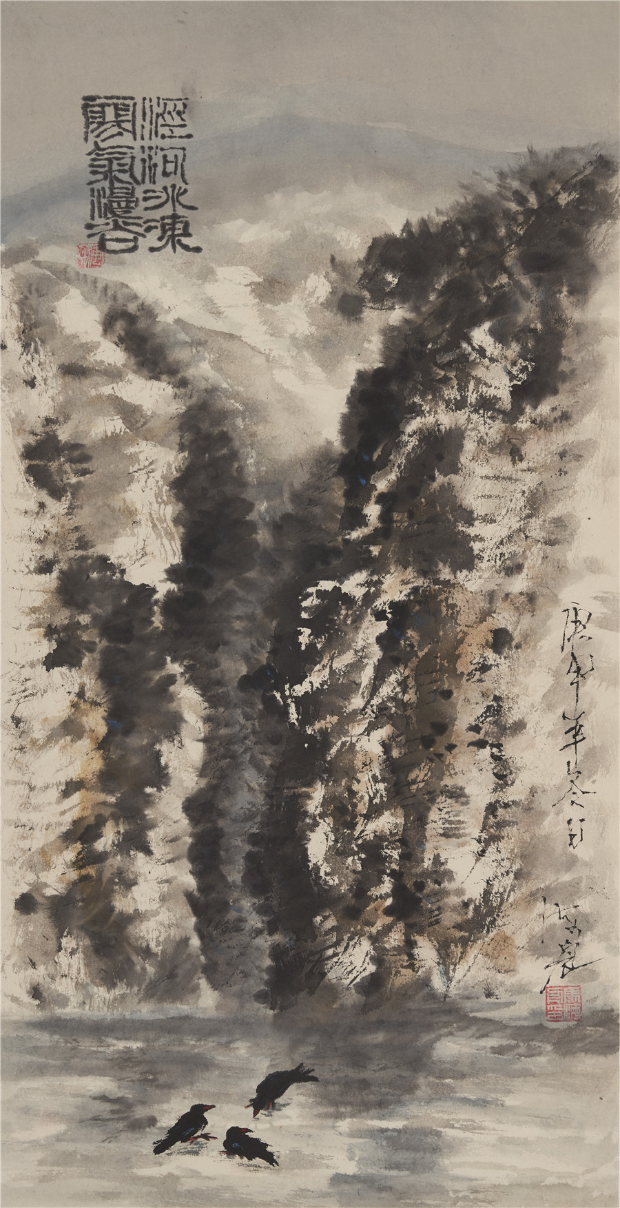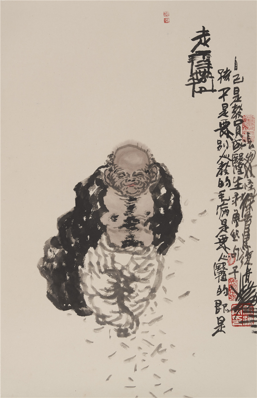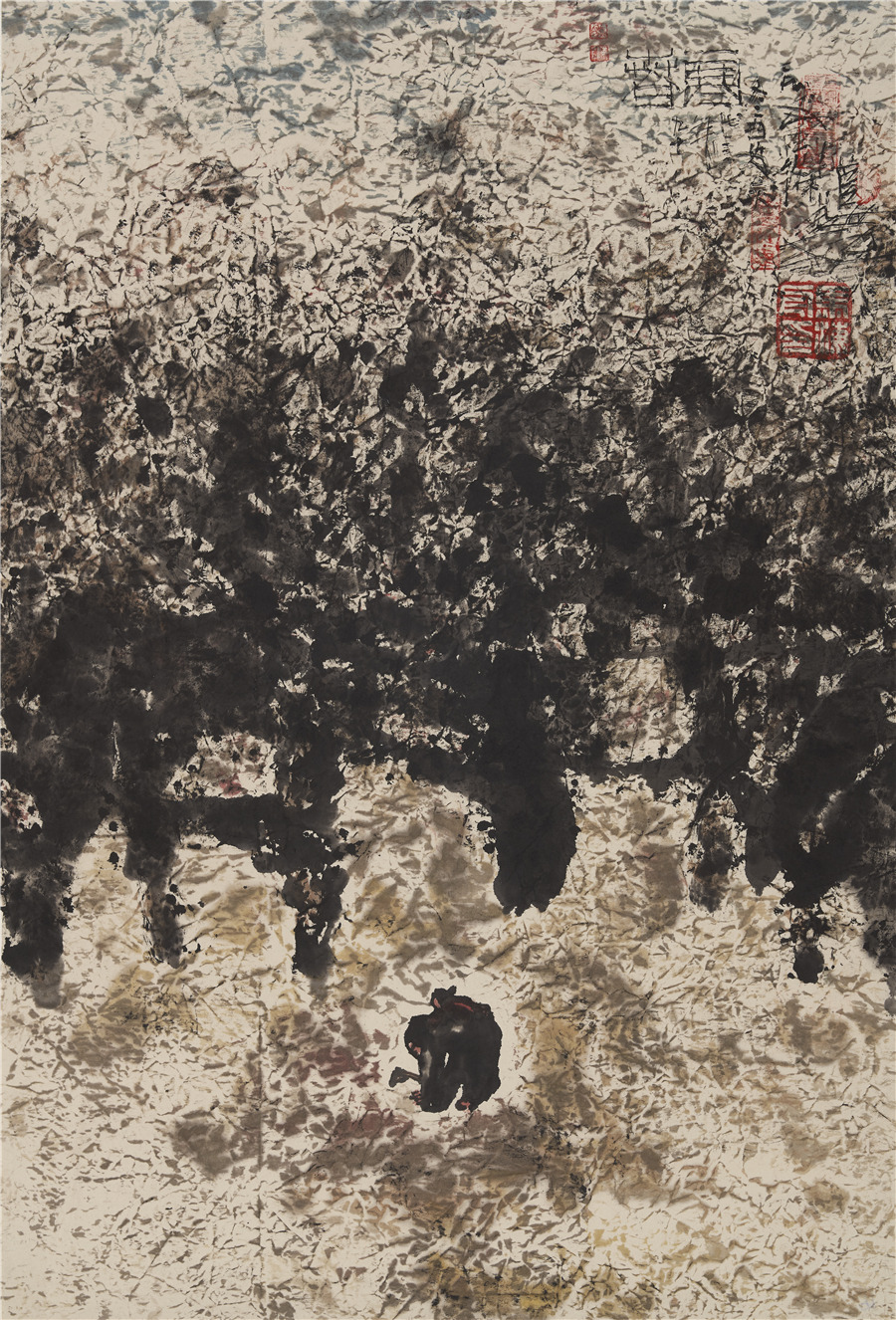 我原以为是这个人的性格及为人处世比较“怪”,但相见之后完全出乎意料。初见马海舟,他和蔼亲切,很善言谈,尤其是谈论与艺术相关的话题更是滔滔不绝,而且对书画创作更是有独到的见解,与我在京城接触的很多大画家相比,他随和没有架子,让人没有距离感。畅聊并欣赏了马海舟的作品之后,我才真正的感受了他的艺术魅力,他的很多作品都少有公开发布,他的画作雄劲有力度,厚重有深度,雄劲而不剑拔弩张,厚重而不板滞拙涩,笔墨风格使得画面意象久看有味,每件作品都有极深的思想内涵。他的“怪”是在艺术的创新、画面构图的别致上,完全是一位开拓型的艺术家。