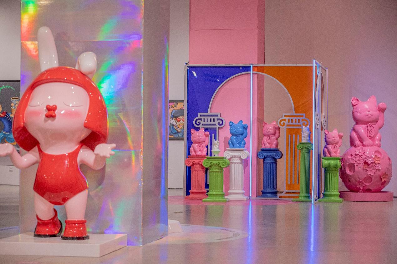 《可可爱爱kakayiyi游艺园》单元是本次展览的创新之处,以 “潮可爱艺术大集合”为主题,展览以粉色甜蜜、潮流向上、巨物艺术为特点,呈现了一系列先锋潮流艺术作品,融合艺术IP衍生品,创造了艺术IP化、生动化体验的展览方式,展现出了中国当代潮流艺术的新面貌。