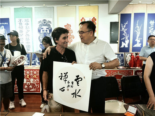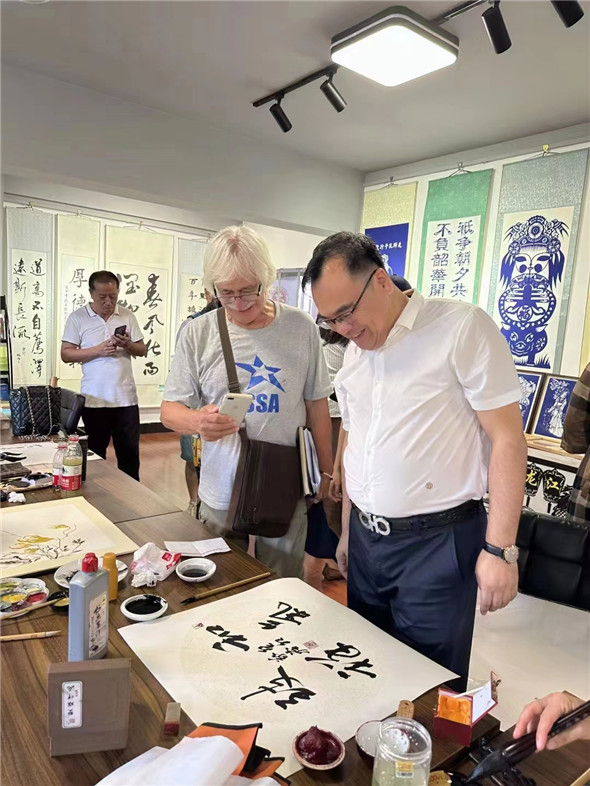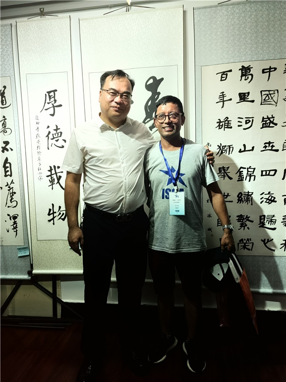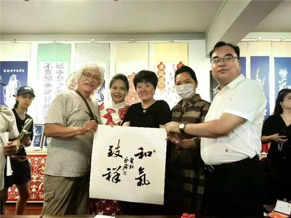 国礼书法家张福贵先生现场创作的多幅作品被各国的艺术家们现场收藏,合影留念。