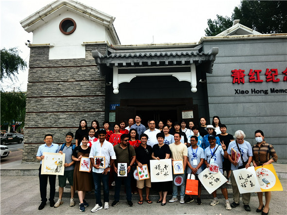 2023年7月27日上午,国礼书法家张福贵先生应邀参加中国.呼兰漂浮的雕塑公园的四大洲十六国家的国际雕塑大师在呼兰区萧红纪念馆的国际艺术交流活动。