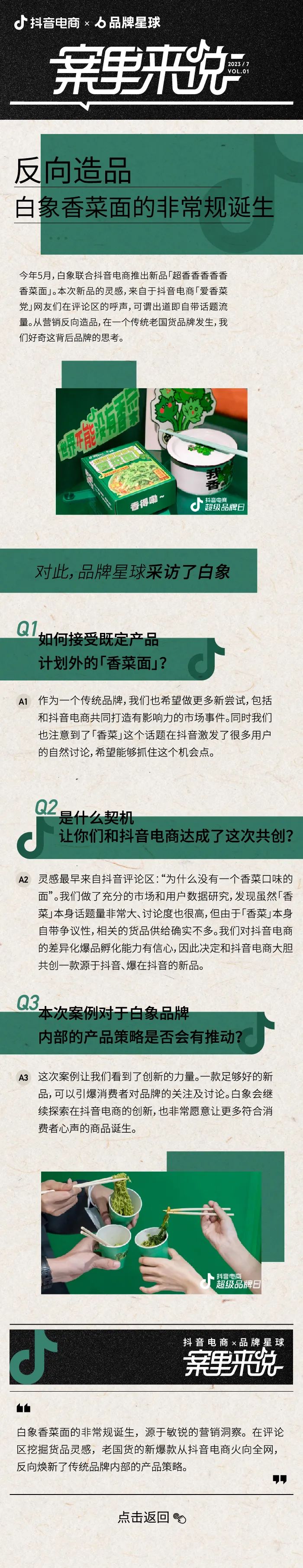 营销手段不断创新升级,如何打造品效合一的案例?如何最大限度借势平台,促进生意侧增长?营销案例不断涌现,有哪些值得关注的好case? 「案里来说」栏目全新发布,抖音电商联合品牌星球深度共创,沉淀有代表性的优秀案例,解析背后玩法,助力更多品牌营销升级。 82年的雪碧原来真的没骗人,热梗话题成功催生爆品、香菜党VS拒绝香菜党,白象香菜面营销反向造品、这个6.1超可爱,16个品牌在抖音电商集体变小啦……本期案例带你细品在抖音电商营销还能这么玩~