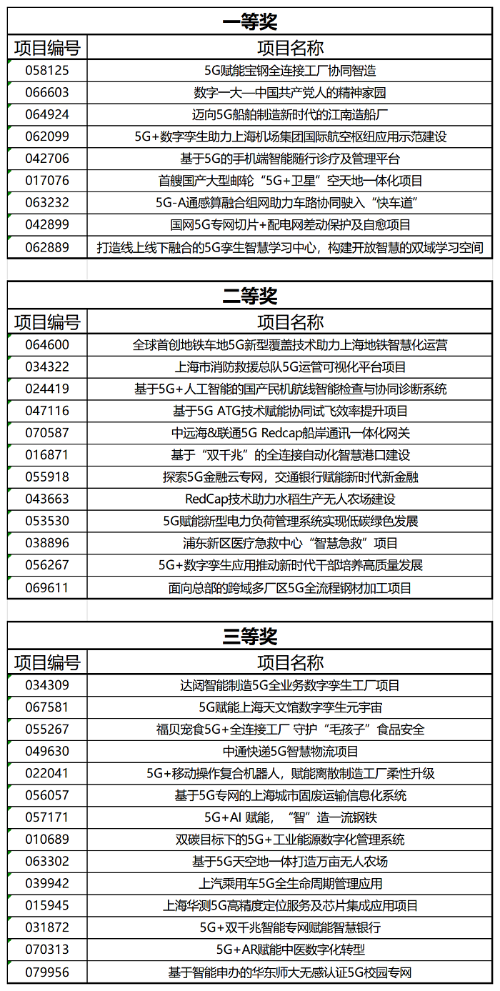 附件:第六届“绽放杯”5G应用征集大赛上海区域赛获奖名单。
