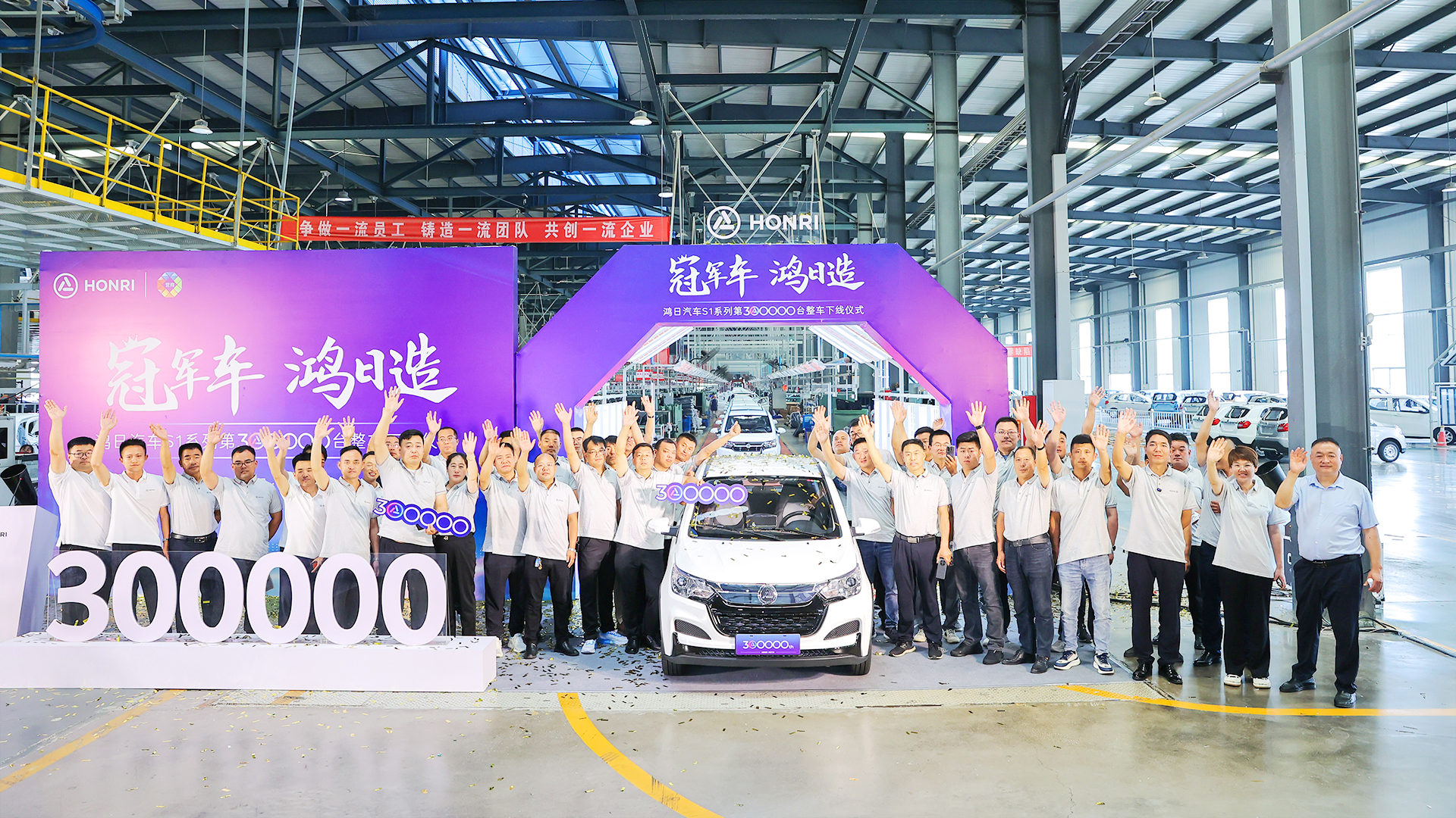 2023年6月20日,鸿日汽车S1系列第30万台整车顺利下线,创下纯电动单一车型销量行业第一的记录;2023年8月26日,依托集团近10年新能源汽车研发优势,鸿日汽车重磅发布行业首个全球化微出行模块化平台——“HONRI Ligheart 鸿日轻芯”技术,进一步提升产品竞争力,力争让鸿日车开到全球每一个角落。