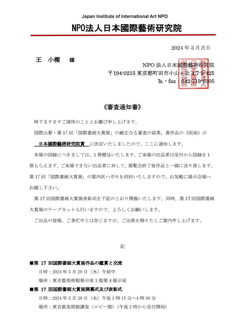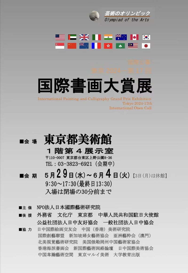 【中网资讯书画】本次大赏展由NPO法人日本国际艺术研究院主办,日本外务省、文部科学省、东京都政府、中国驻日大使馆等政府府机构后援,海内外多家团体协力。