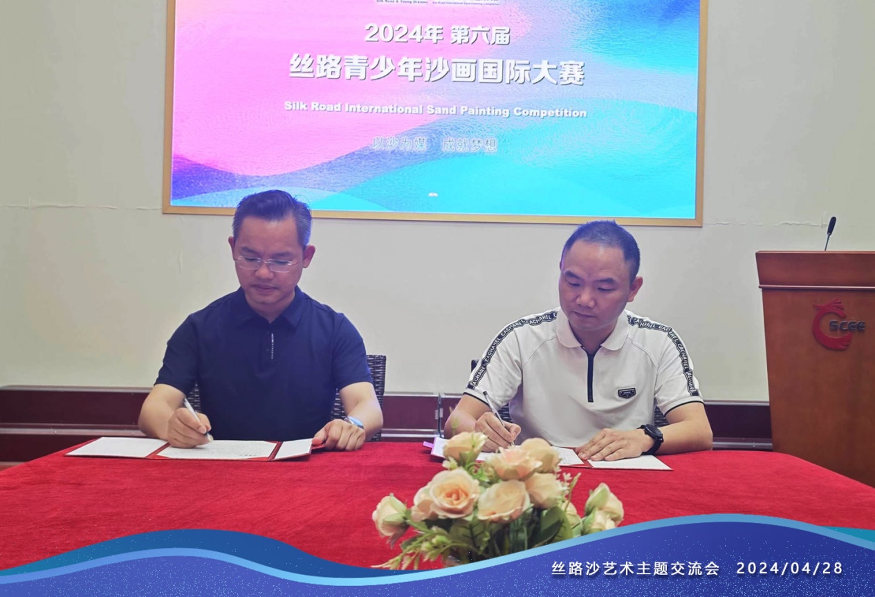 4月28日,丝路青少年沙画国际大赛组委会执行主席苏大宝与广东省艺术品行业协会秘书长陈乾、副会长李冲在南方文化产权交易所会议厅进行了友好的交流,并签署了战略合作协议。