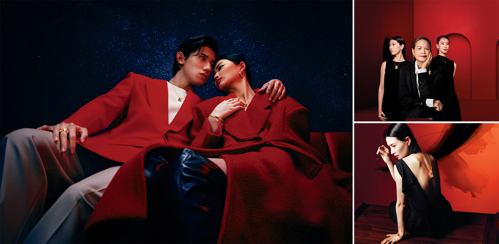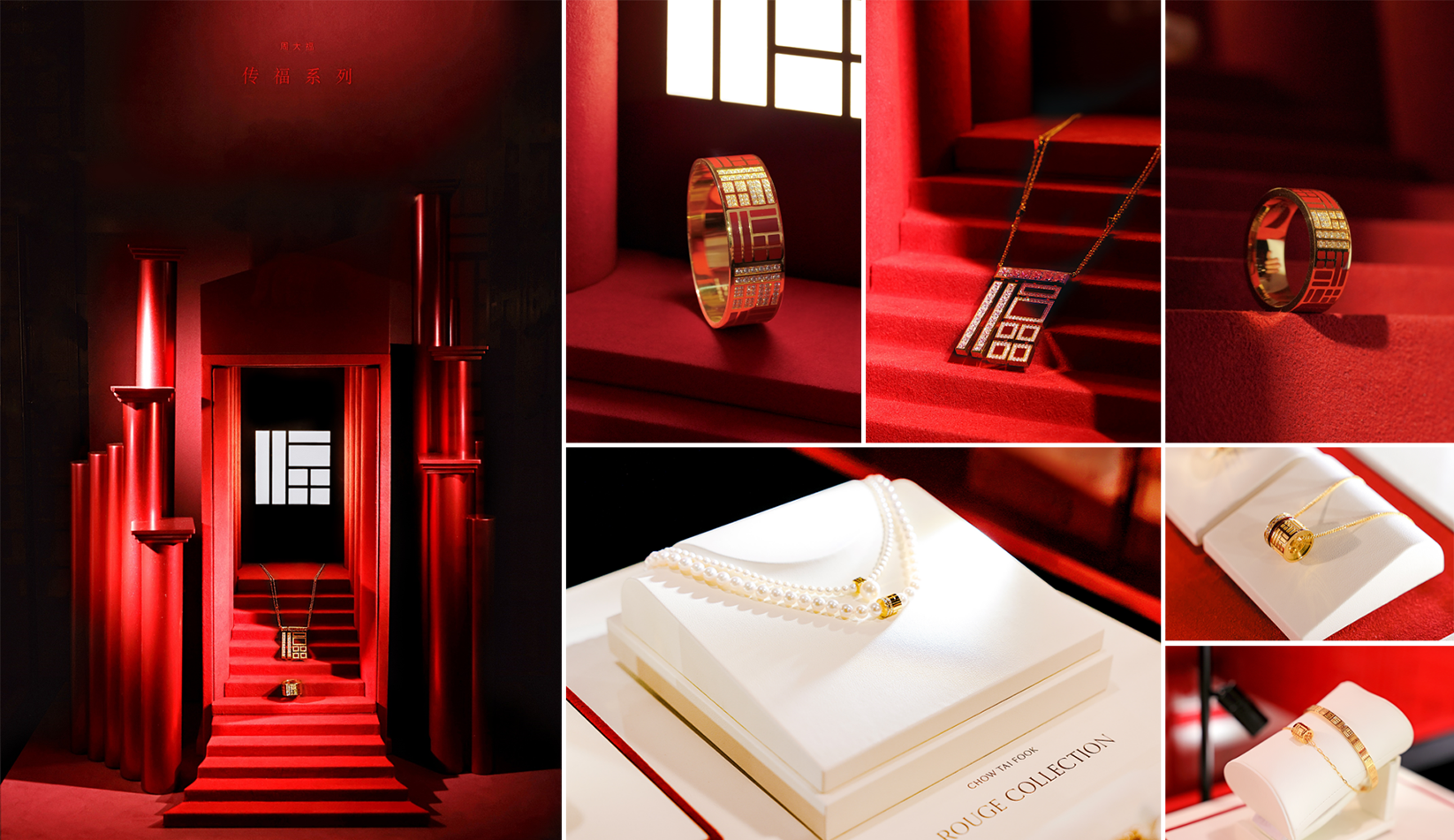 红砖墙与窗棂作为具有悠久历史和丰富文化内涵的中国传统建筑组成部分,勾勒出“传福系列”的核心设计元素,象征着家的边界,传递安全感、稳定性、传承性。“传福系列”采用重金呈现出珠宝独特的质感,定制红色鎏彩的点缀增添先锋感与高级感,以无断式一体切割技术打造高级简约的线条感,并结合人体工学设计达到产品佩戴时的帖服自然。系列的每件作品都是超越时间的隽永设计,再现生活中的真实经历和感动瞬间,将悦己、亲情、爱情、友情等珍贵情感定格。“传福系列”承载绵延不绝的幸福,并将这些时刻凝聚于周大福传福限时展,与大众共同探索福韵之美。