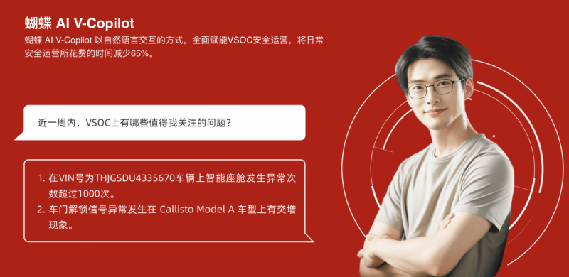 比如,当车企运营人员打开VSOC时,看到几十万条的安全告警信息时,如果没有大模型助手的分析,很容易在海量预警中忽视真正有风险的安全漏洞。但用 VSOC助手后,运营人员可以直接提问:这么多异常车门状态警告中,哪些是真正有威胁的案例?