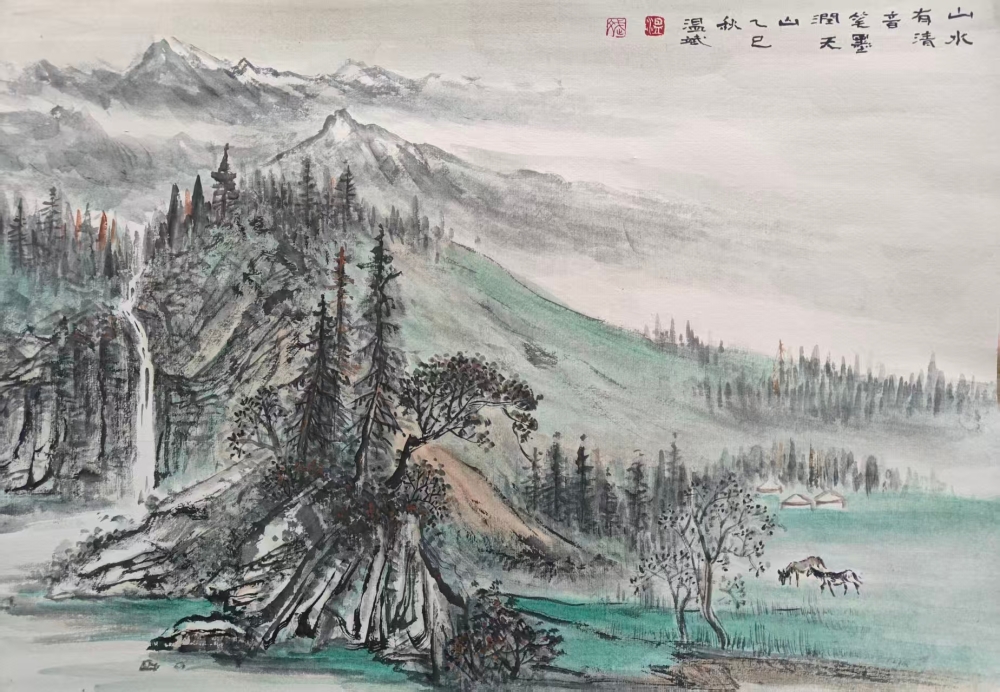 这种“在地性的美学重构”对当代中国画发展具有重要启示意义。当艺术界热议“本土化”与“全球化”之际,温斌的实践提供了一条中间路径——深入具体地域经验,却不被其局限;掌握传统绘画语言,却用以表达当代生活。他的边疆山水画既是对特定地理空间的深情写照,也是对山水画这一古老艺术形式的当代诠释。